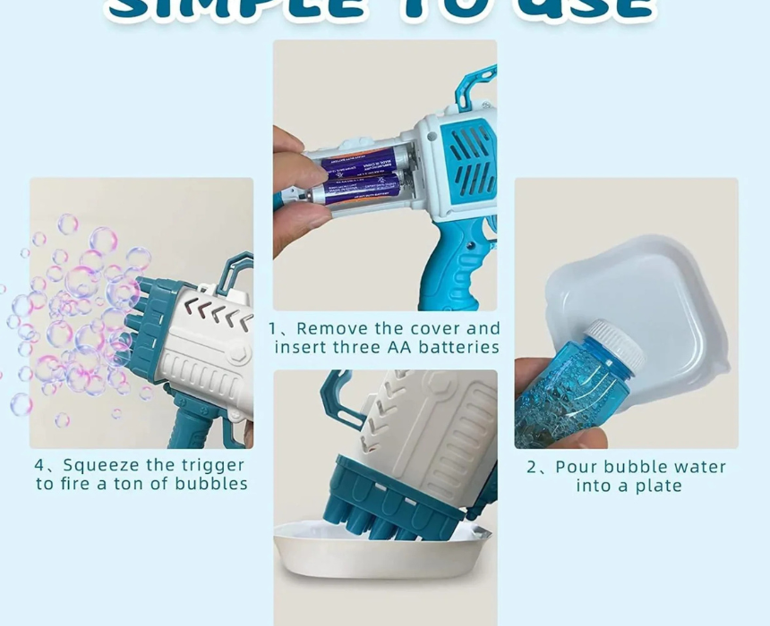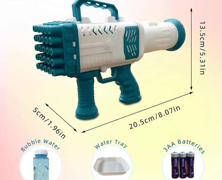 The Bubble Gun 25 Holes creates a dazzling stream of bubbles with every pull of the trigger, featuring multiple nozzles for a fun and vibrant play experience. Its lightweight, easy-to-hold design is perfect for outdoor parties, beach trips, or backyard fun and pairs well with casual summer outfits.