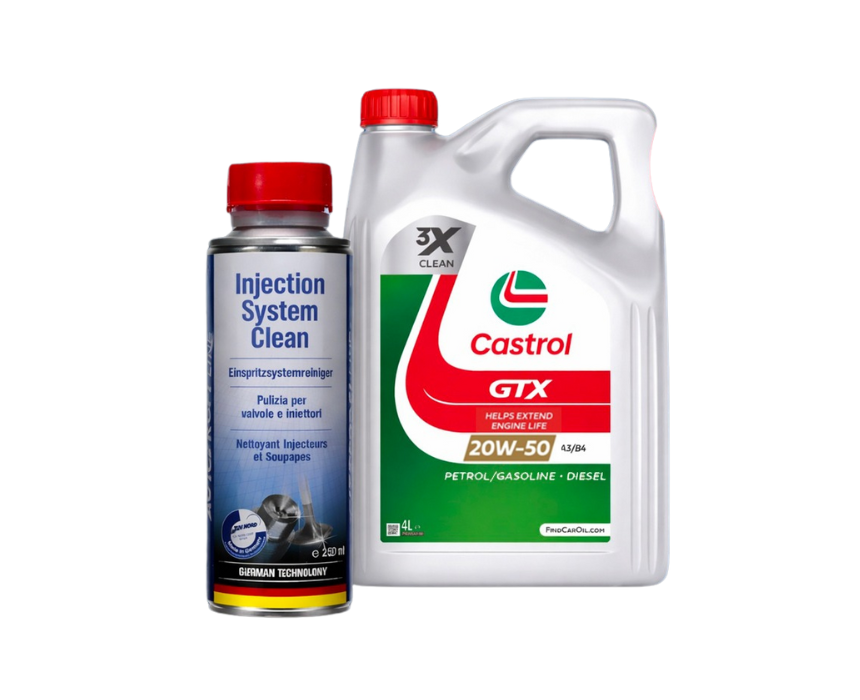 <p>Bundle X2 GTX 20W50 motor oil with Injection System Clean offers complete engine care, ensuring smooth performance and reducing buildup in fuel injectors. Ideal for regular maintenance, this bundle keeps your engine running efficiently and extends its lifespan. Easy to use, simply pour the oil and add the injection cleaner as recommended for optimal results.</p>