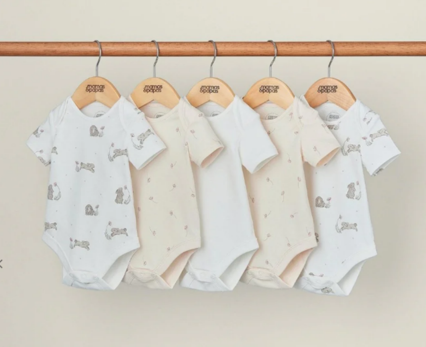 The Bunny Floral Short-Sleeved Bodysuits Set of 5 is made from supersoft 100% cotton, designed for comfort and ease in a newborn’s first weeks. The set includes two bunny prints, two floral prints, and one plain bodysuit, all featuring popper fastenings at the crotch for easy dressing and nappy changes. Part of the Welcome to the World collection, these bodysuits offer timeless style, gentle materials, and practical designs for day-to-day wear.