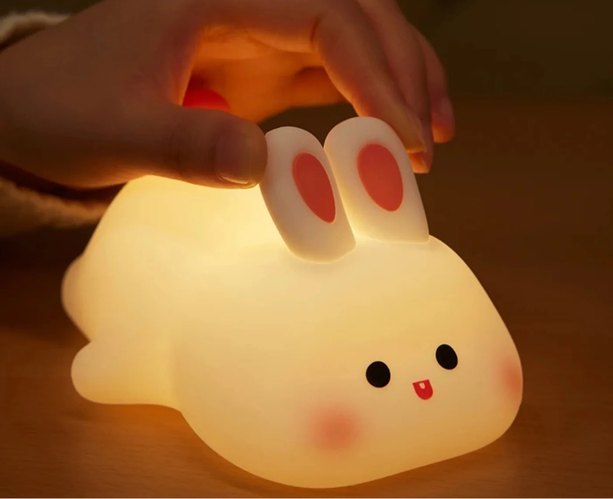 The Bunny Led Night Light is a soft, BPA-free silicone lamp designed to provide a comforting glow for kids. Featuring dimmable touch control with three adjustable brightness levels and a USB rechargeable battery, it is perfect for bedtime, nursery use, or portable lighting on trips. Its cute bunny design adds charm to any room while offering safe, soothing illumination for children.