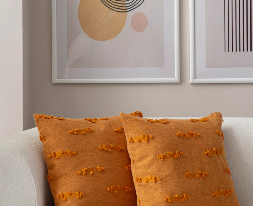 The Burnt Orange Textured Woven Throw Pillow adds warmth and character with its soft woven fabric and subtle texture, perfect for sofas, beds, or accent chairs. Its rich burnt orange tone enhances modern, boho, or rustic décor styles. Pair it with neutral or patterned cushions to create a cozy, layered look that brings depth and color to any living space.