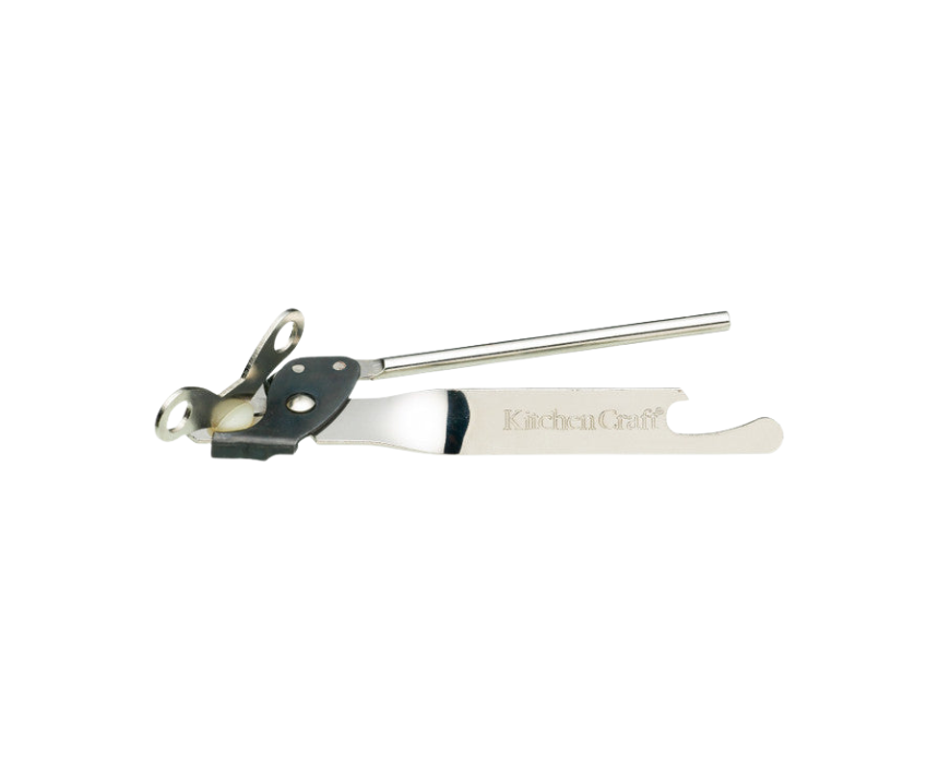 The KitchenCraft Metal Butterfly Can Opener offers a simple, reliable way to open cans quickly and efficiently. Featuring a sharp tempered steel cutting wheel, sturdy metal handles, and a built-in bottle opener, it is perfect for everyday kitchen use. Handwash only and measuring 16 x 5.8 x 3 cm, it combines practicality with durability for effortless meal prep.