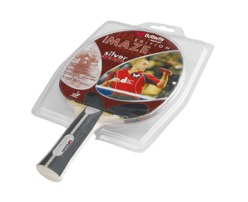 The Butterfly Racket Michael Maze Silver is engineered for players seeking precision, speed, and control in every table tennis match. Featuring high-quality rubber and a comfortable grip, it supports accurate shots and consistent spin for beginners and intermediate players. Simply hold the ergonomic handle and pair with proper stance and practice sessions to improve skills and enjoy a competitive playing experience.