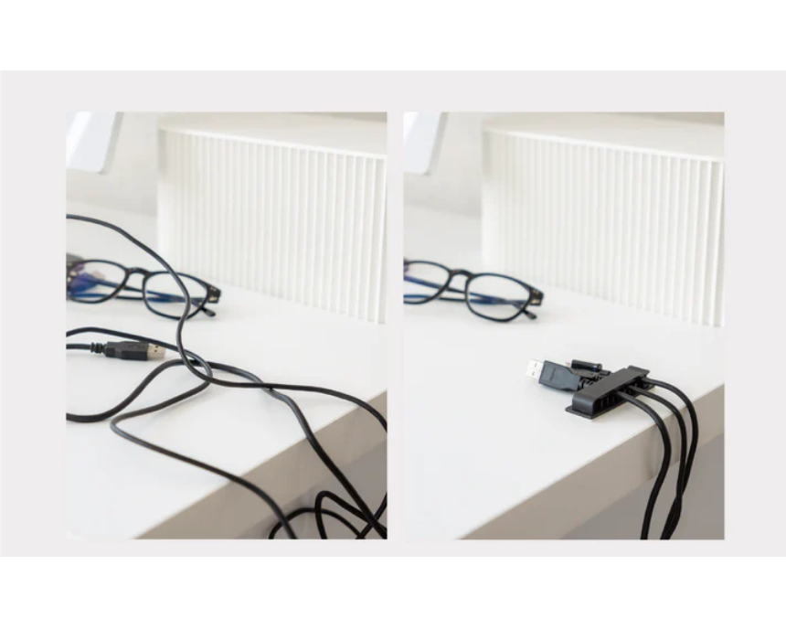 These cable clips are crafted from high grade heat resistant plastic to keep wires organized and tangle free in home or office setups. This set is available as a pack of three for the eight slot version or a pack of four for the five slot version to accommodate multiple cables at once. To achieve a neat environment simply slide your wires through the flexible slots and secure them for instant organization on any flat surface. Please verify your workspace dimensions prior to ordering to ensure these clips are a perfect fit for your cable management needs.