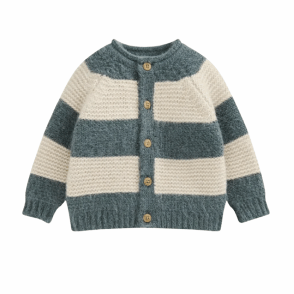 The Grey Cable Knit Cardigan is a cosy and stylish layering piece for little ones, perfect for colder days. Featuring a soft cable knit design, front button fastening, contrast trim on cuffs and hem, and a knitted pocket, it combines comfort with classic charm. Pair with trousers or leggings for a timeless, warm outfit for play or special occasions.