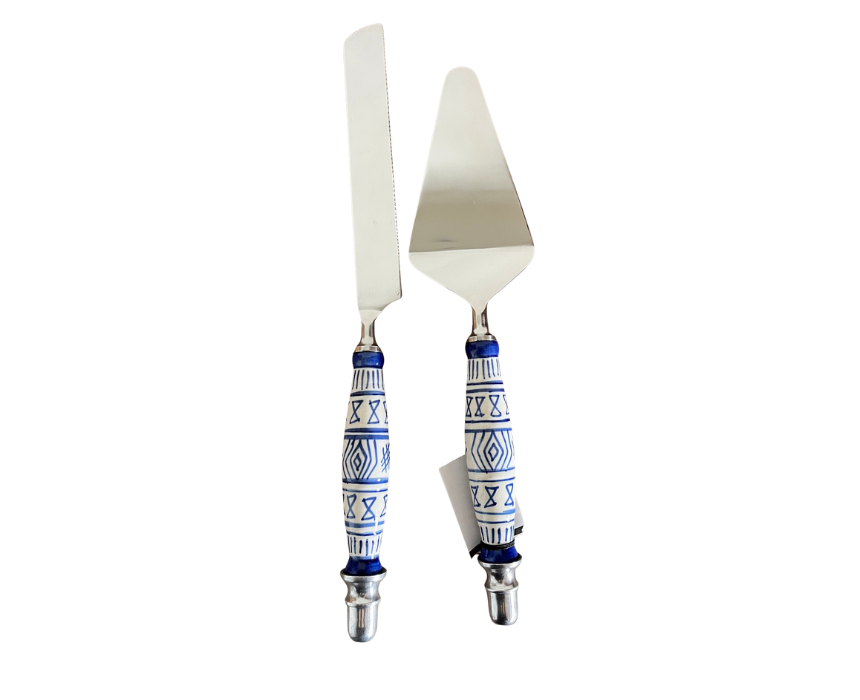 Cake Cutting Set features durable stainless steel blades paired with elegant hand-painted ceramic handles in a variety of patterns. Perfect for slicing and serving cakes with style, it adds a touch of sophistication to any celebration. Ideal for birthdays, weddings, or special occasions, it makes both a practical and beautiful addition to your kitchen or dining table.