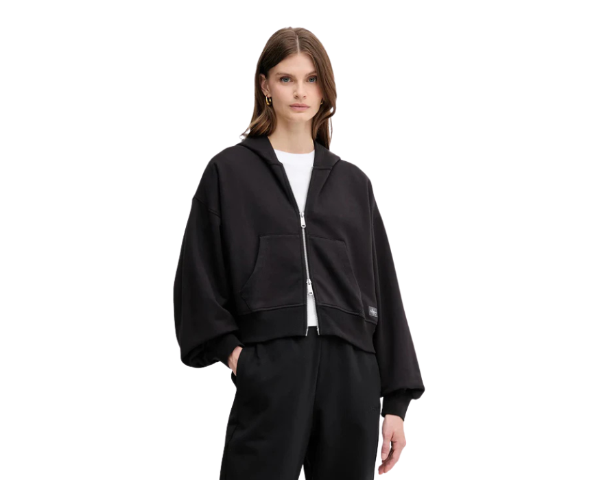 The Calvin Klein French Terry BadG jacket delivers cozy comfort with a clean sports inspired design. Crafted from 100 percent cotton, it features long sleeves, a hood, side pockets, elastic finishes, a zip closure, and an embroidered logo for a refined touch. Machine washable and easy to style, it pairs perfectly with joggers or jeans for relaxed everyday wear.