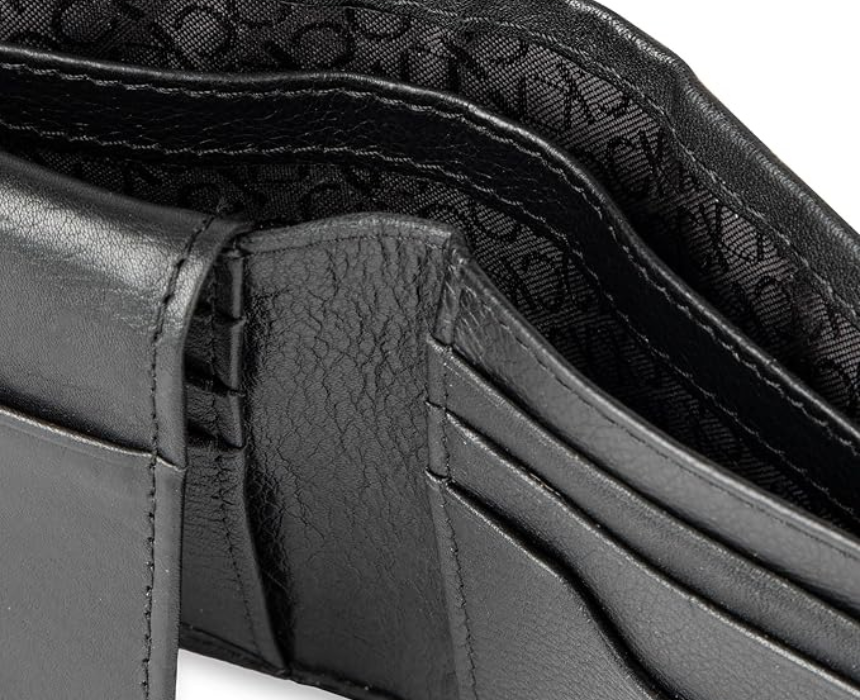 The Calvin Klein Men’s RFID Bi Fold Wallet is crafted from smooth, shiny leather and features tonal stitching with an embossed Calvin Klein logo on the front. Measuring 9 x 2.5 x 11 cm, it includes multiple card slots, a banknotes slot, and a coin pocket, making it perfect for bills, cards, and IDs. Stylish and practical, it is ideal for daily use by men, students, teachers, office workers, or as a gift.