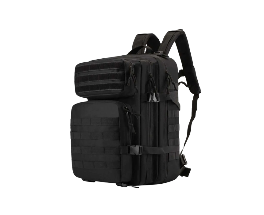 900D 45L tactical hiking backpack made from durable Oxford fabric, ideal for camping, trekking, and outdoor adventures. Available in black, olive green, black camouflage, and sand camouflage, it offers ample storage and rugged design for all your gear. Perfect for hiking, travel, and everyday outdoor use.