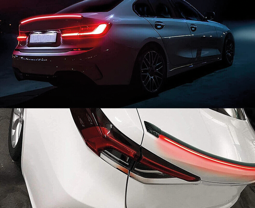 Upgrade your ride with Carbon Fiber Spoiler Lights featuring a sleek carbon fiber texture. Designed for 12V vehicles, these waterproof tail brake and turn signal lights offer dynamic, streamer-style illumination in red or RGB. Perfect for enhancing both safety and style, they install easily on the rear spoiler to add a modern, high-performance look.