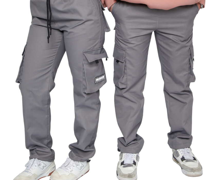 These grey cargo pants are crafted from durable, breathable canvas fabric and designed for all-day comfort with a modern streetwear edge. They feature bold leg pockets, functional back pockets, a signature DOUBLEXXCOLLECTION rubber label on the left leg, and elasticized ankles for a loose or cinched fit. Style them with hoodies, T-shirts, or sneakers for a versatile, utility-inspired street look.