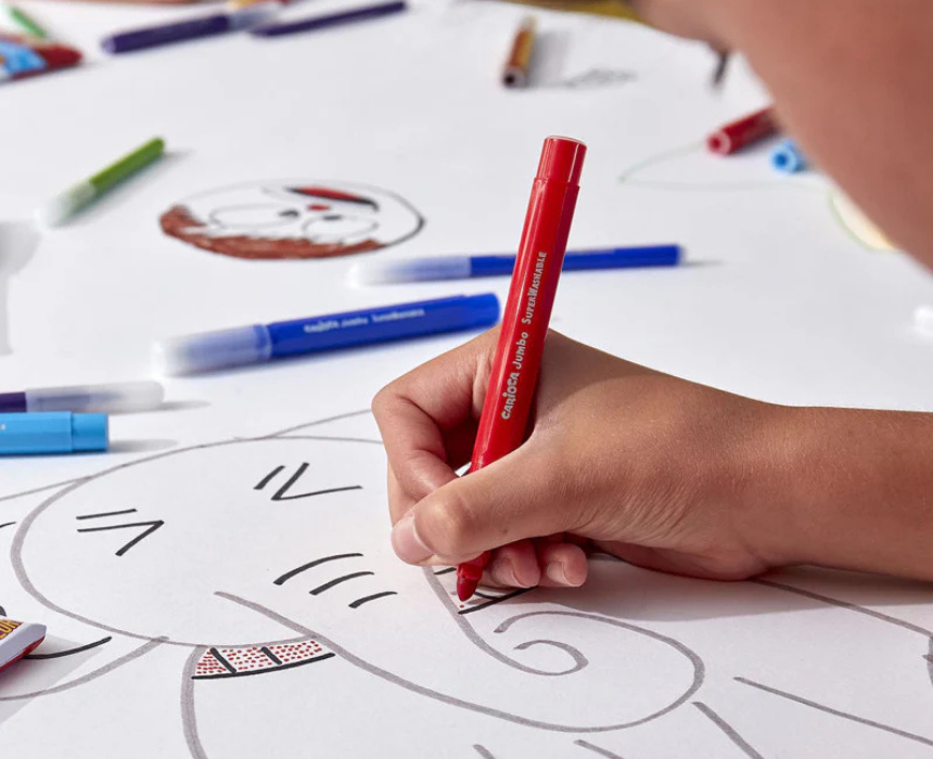 The Carioca Jumbo Superwashable Box includes 40 maxi-tip octagonal markers with 6 mm fixed tips and ultra-washable ink, ideal for bold, vibrant coloring. The sturdy box with ventilated caps makes storage easy and safe, perfect for home, school, or travel projects. Made in Italy, these markers provide fun, high-quality art experiences for children while encouraging creativity and expression.