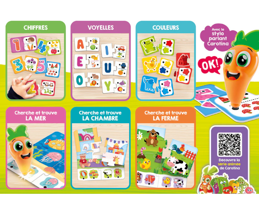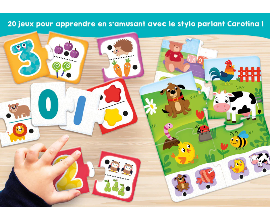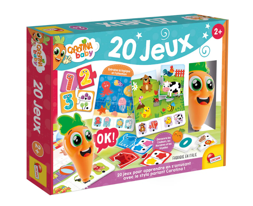 Carotina 20 Jeux is a versatile activity set offering 20 different games designed to engage children in fun and educational play. It promotes critical thinking, problem solving, and creativity while supporting social interaction and fine motor skill development. Perfect for home or group activities, it keeps young learners entertained while fostering cognitive growth and learning through play.