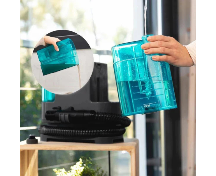 The Cecotec 5082 Conga 3000 CarpetClean is a versatile 3-in-1 dry cleaning machine with 400 W power, ideal for spraying, vacuuming, and cleaning upholstery and carpets. It features separate clean and dirty water tanks, a 1.2 m suction hose, and a 6-meter working radius, handling both solids and liquids efficiently. Compact and black, it ensures thorough cleaning in homes or offices with ease and convenience.