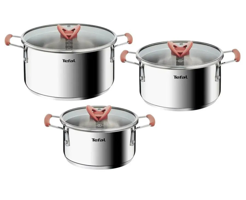 The Tefal Opti’Space Stainless Steel Casserole Set includes 3 casseroles (18, 20, 24 cm) with lids, designed for space-saving storage and stackable convenience. Featuring premium stainless steel construction, stay-cool non-slip handles, internal graduations, and a Thermo-Fusion base, it ensures fast, even cooking on all hobs, including induction. Compact, durable, and ergonomic, this set combines efficiency, safety, and long-lasting performance in one kitchen essential.