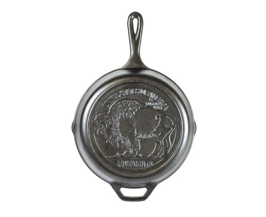 Cook with a piece of American history using this Buffalo Nickel cast iron skillet, made in the USA and naturally seasoned with 100% vegetable oil. Its excellent heat retention ensures even cooking, while the durable cast construction promises generations of use. Compatible with all stovetops, ovens, grills, and campfires, this nontoxic, PFAS-free skillet combines functionality, longevity, and collectible charm.