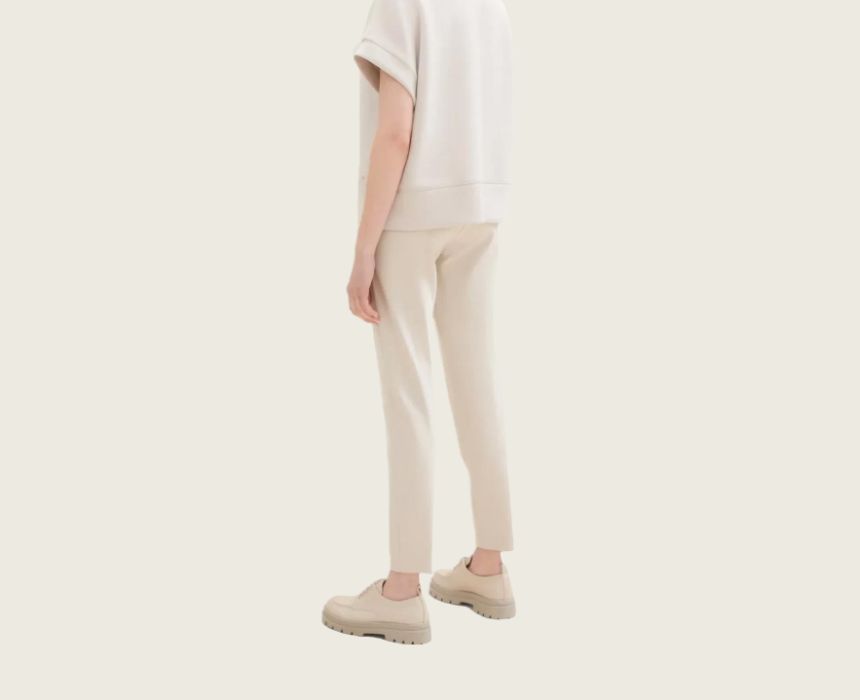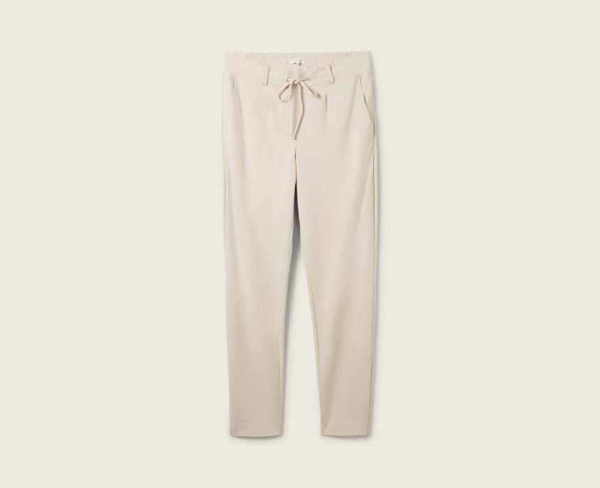 The Tom Tailor Casual Material Beige Pant combines effortless style and comfort with its waisted tie, slanted side pockets, and chic sporty design. Perfect for casual outings or relaxed office looks, these pants pair beautifully with a fitted top and sneakers for a sporty vibe or a blouse and loafers for a polished touch. A versatile staple for modern wardrobes!