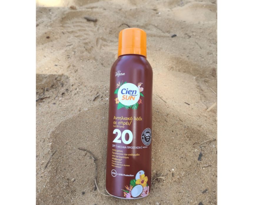 Cien Sun Transparent Tanning Oil (200 ml) is a lightweight sun oil spray with SPF 20 that protects against harmful UV rays while providing a natural glow. Its non-greasy, water-resistant formula helps prevent skin dryness, making it perfect for outdoor tanning sessions. Easy to apply, it absorbs quickly and can be used daily for radiant, hydrated skin. Made in Germany.