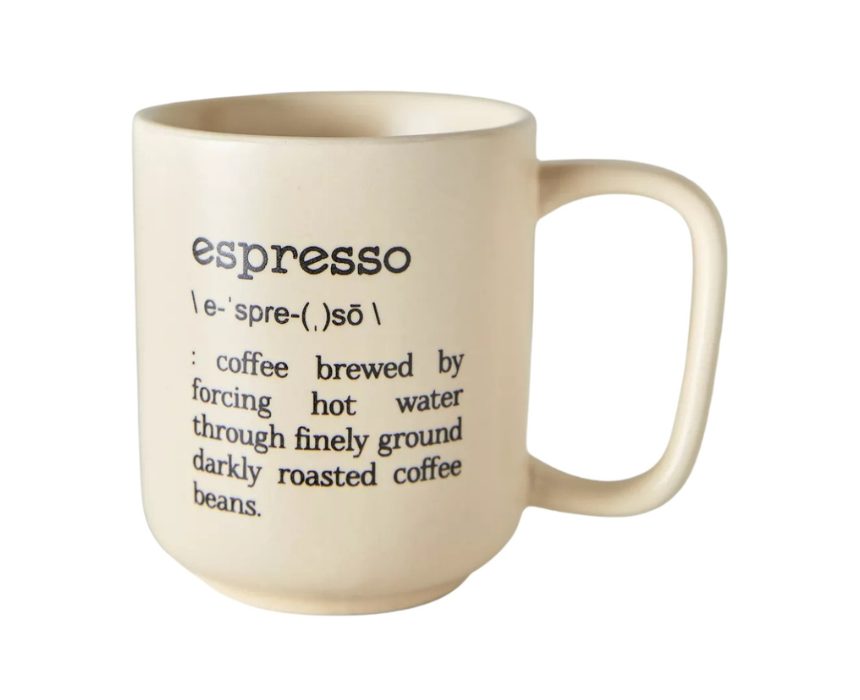 This 90 ml ceramic mug in beige is perfect for enjoying coffee or tea with style. Featuring a charming espresso print, it adds a touch of luxury to your beverage moments and makes every sip feel indulgent and elegant.