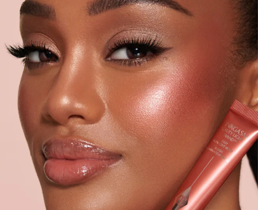 Charlotte Tilbury Beauty Light Wand in Pinkgasm Sunset is a liquid highlighter-blush that adds a radiant rosy-pink glow with a soft-focus, light-reflecting finish. Featuring an easy-to-use cushion applicator, the buildable formula blends seamlessly to illuminate cheekbones with a flattering Hollywood glow. Dot onto the cheeks and blend with fingers or a brush for a fresh, luminous pop of color.