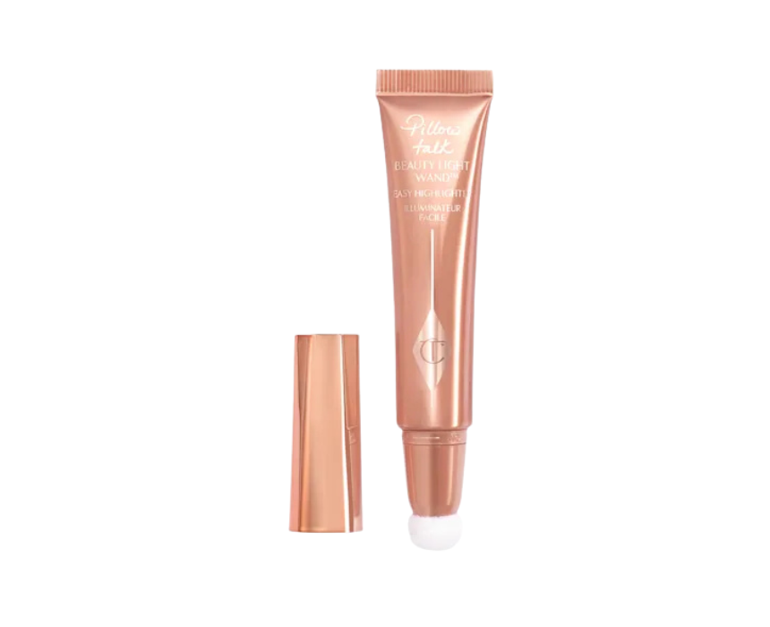 Charlotte Tilbury Beauty Light Wand in Pillow Talk Original is a multi-use illuminating gel that can be worn as a highlighter or blush for buildable color and instant luminosity. Enriched with soft focus silica, lustrous polymers, and sensorial oil, it blurs imperfections while imparting a silky, glossy finish. Easy to dot and blend, it enhances skin’s glow with a smooth, long-lasting, non-greasy finish.