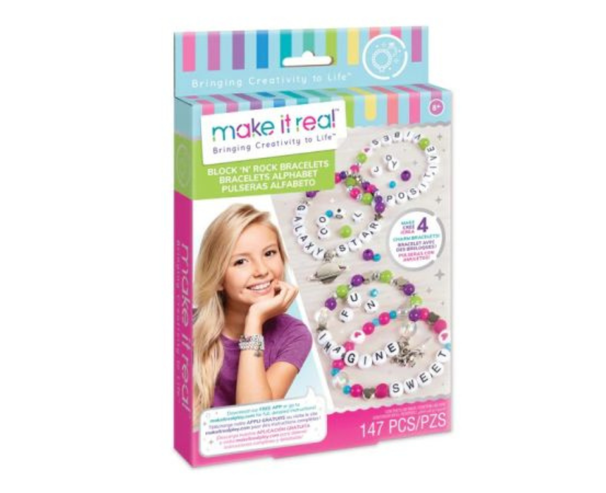 This jewelry bead kit includes 66 alphabet letter beads, 73 stylish beads, 2 charms, a 1.1 m clear elastic cord, 3 jump rings, a PlayTray, and an instruction sheet. Perfect for creating personalized bracelets, necklaces, and fun accessories, it encourages creativity and fine motor skills for kids and beginners.