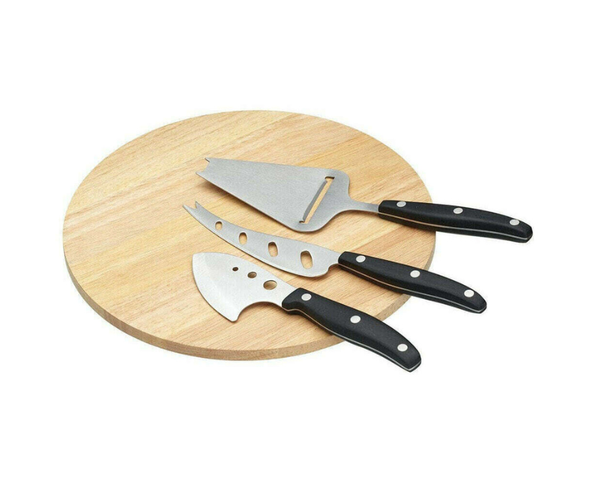 This complete cheese serving set includes a cheese knife, cheese plane, cheese cleaver, and a wooden cutting board, all crafted from high-quality stainless steel with ergonomically designed handles for durability and comfort. Perfect for entertaining or everyday use, the wooden board provides a stylish base for serving, while all knives are dishwasher safe for easy cleaning. The 25cm set combines functionality and elegance for cheese lovers.