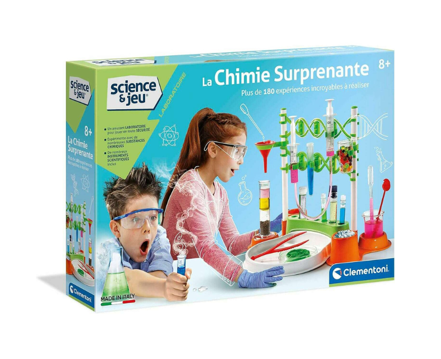 This chemistry lab kit lets young scientists aged 8 months to 8 years explore the secrets of science through 180 safe experiments. The set includes a variety of substances to create exciting chemical reactions, with step-by-step illustrated instructions for easy and fun learning. Made in Italy and sized at 53 x 36 x 9 cm, it encourages curiosity, hands-on experimentation, and a love for chemistry at home or as a gift.
