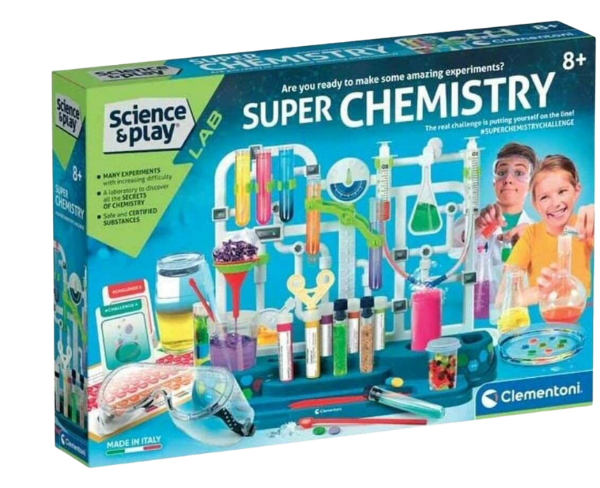 This Chemistry Lab Kit introduces children aged 8+ to the world of science with a complete set of instruments including test tubes, syringes, and a dedicated workbench for reactions, measuring, and filtrations. The kit features five experiments with online tutorials and interactive cards to challenge young scientists and share results with friends. It encourages hands-on learning, curiosity, and exploration in a safe and engaging way.