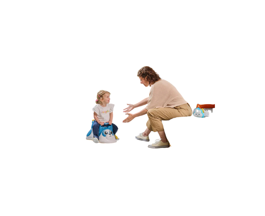 The Chicco 3 in 1 Rocking Panda is a versatile ride on toy that transforms into a rocking animal, indoor or outdoor ride on trolley, and a practical wheelbarrow. Featuring swivel wheels, an ergonomic seat, an easy grip handle, and a Montessori inspired sorting tray, it promotes creativity, balance, and coordination through active play. Use it for riding adventures, rocking fun, or imaginative sorting games depending on your child’s mood.