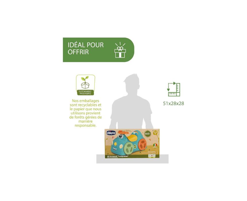 The Chicco All Around ECO+ Red Ride On is an eco friendly toy designed to support motor development and coordination for children aged 1 to 3 years up to 20 kg. Made in Italy from 75 percent recycled plastic, it features swivel wheels for easy movement, a mechanical horn, a storage compartment under the seat, and fun stickers. Ideal for indoor or outdoor play, it lets little ones ride comfortably while carrying their favourite toys.