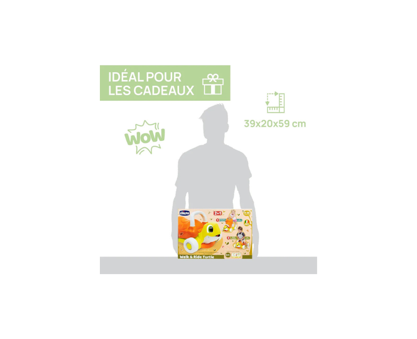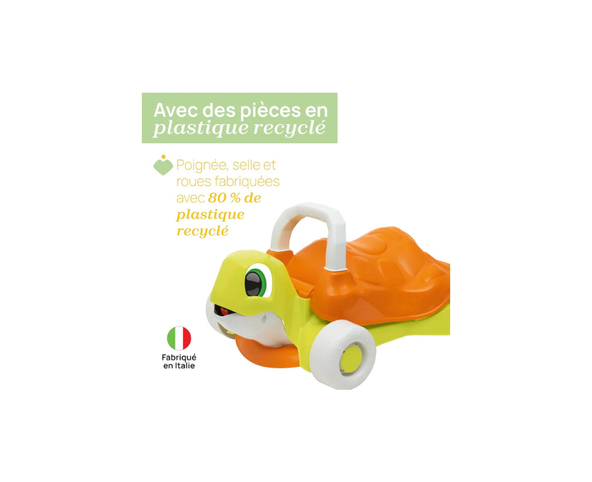 The Chicco 2in1 Walk & Ride Turtle is a safe, durable, and eco-friendly toy made of 80% recycled plastic, designed for children to either ride or use as a walker by lifting its shell. With a grain finish and paint-free surface, it encourages mobility and exploration while supporting sustainable play. Perfect for indoor or outdoor use, it grows with your child from first steps to active riding adventures.