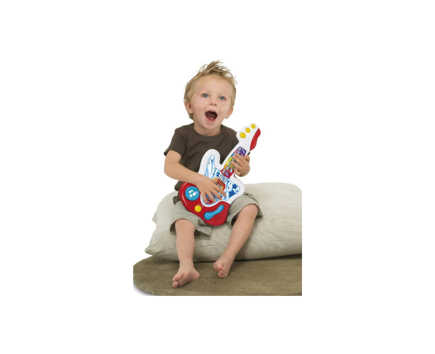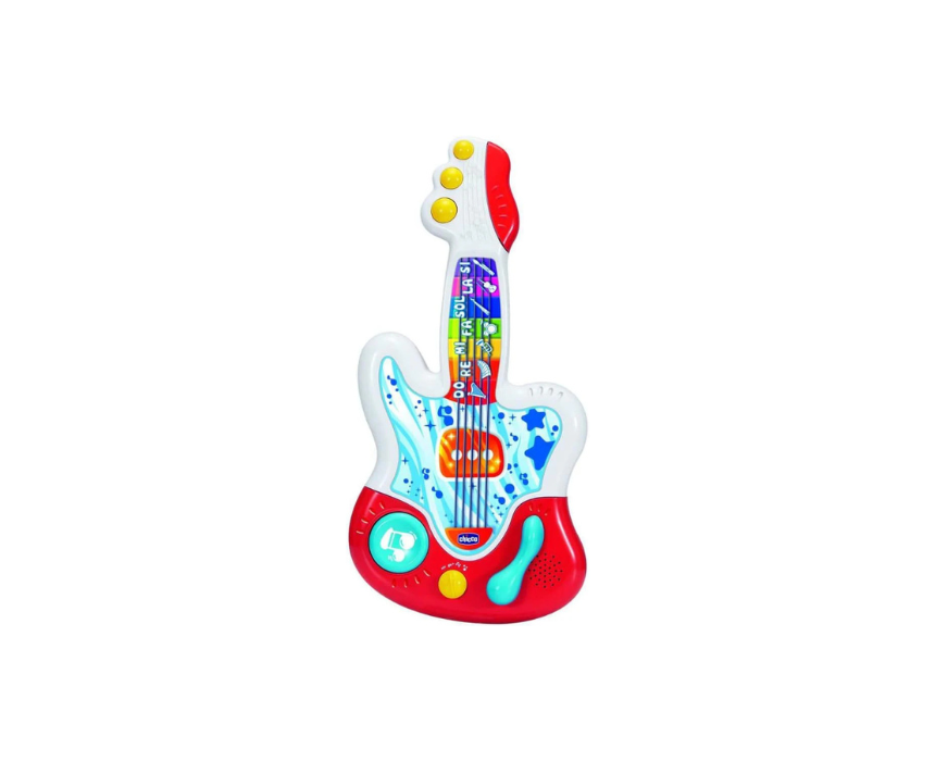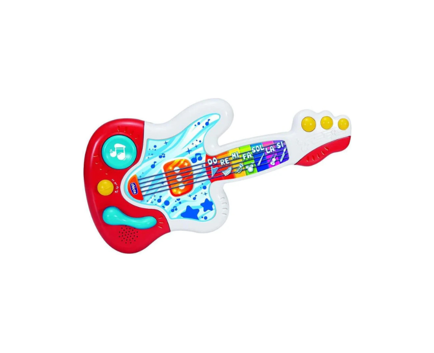 The Chicco Electronic Guitar is a fun and educational musical toy that lets children explore orchestral instruments, music notes, and creativity. With over 90 sounds and melodies and 8 interactive areas, it encourages sensory development, hand-eye coordination, and early musical skills. Perfect for floor or table play, it inspires children to experiment with rhythm, tunes, and interactive sound effects.