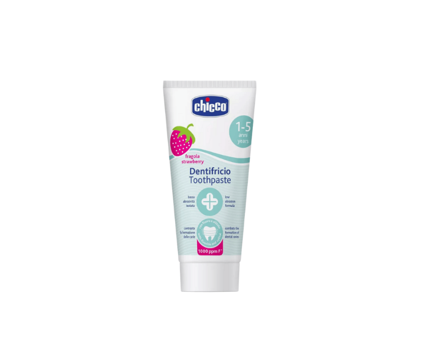 Chicco Strawberry Toothpaste is specially formulated for children aged 1 to 5 years, gently cleaning teeth while respecting sensitive gums and delicate enamel. Its low-abrasion formula helps remove plaque effectively without damaging developing teeth, making it safe for early oral care routines. With a pleasant strawberry flavor, it encourages daily brushing habits; use a rice grain-sized amount for toddlers and a pea-sized amount for older children.