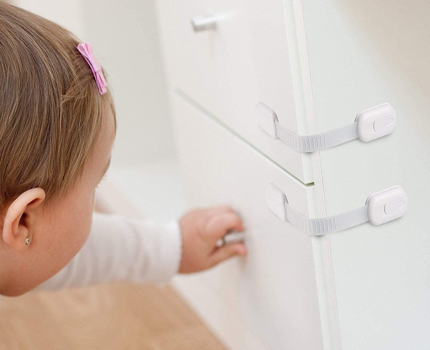 Child Safety Cupboard Locks are a 6 pack of adjustable strap locks made from non toxic ABS plastic, designed to secure cabinets, fridges, toilets and appliances from curious toddlers. With strong 3M adhesive, tool free installation, adjustable 10 to 20 cm length and easy one hand adult use, they blend into modern décor while keeping little hands safe.
