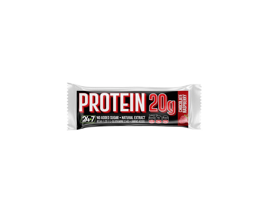 The 24/7 Protein Bar in Chocolate Raspberry combines rich chocolate with tart raspberry flavor, delivering a protein-packed snack to support muscle recovery and energy. Perfect for post-workout nutrition or an on-the-go healthy treat.
