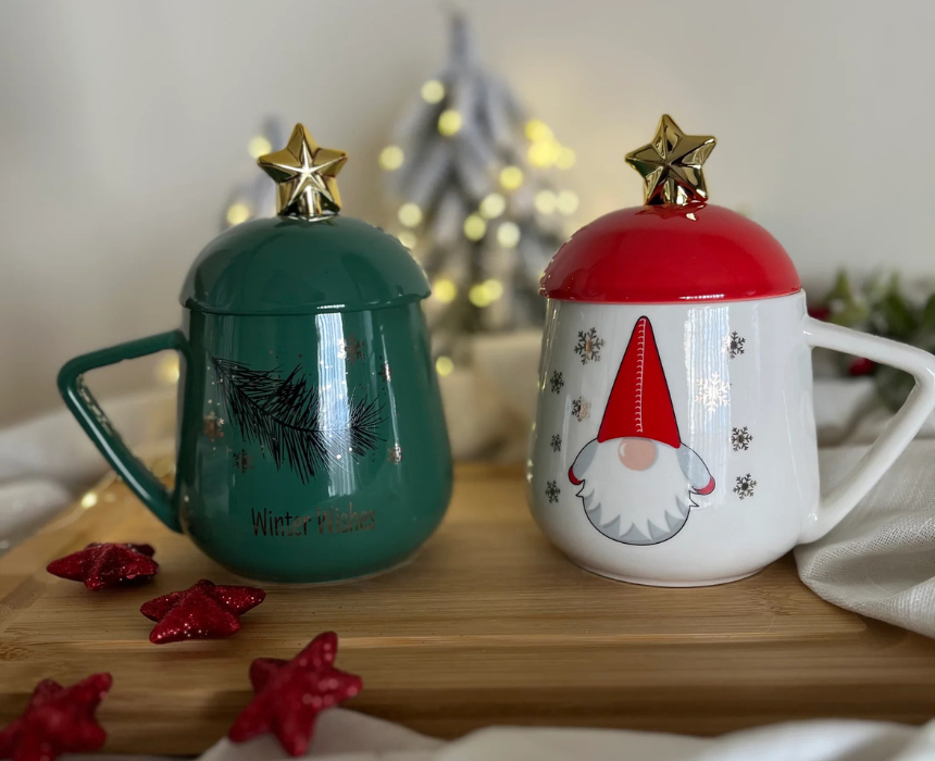 Add festive cheer to your mornings with this Christmas Mug, featuring a convenient cover and a charming star spoon. Available in two classy designs, it makes every sip of coffee, tea, or hot cocoa a joyful holiday experience. Perfect for gifting or adding a seasonal touch to your kitchen and holiday décor.