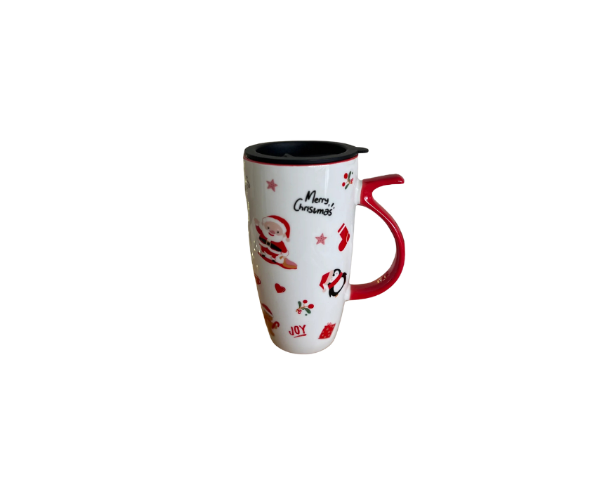 Enjoy your favorite hot drinks in style with this Christmas Big Mug with Cover, made from durable ceramic and available in 2 festive designs. The included cover makes sipping easy and convenient, perfect for home or on-the-go use. Ideal for adding holiday cheer to your morning routine or gifting to friends and family, it combines practicality with festive charm.