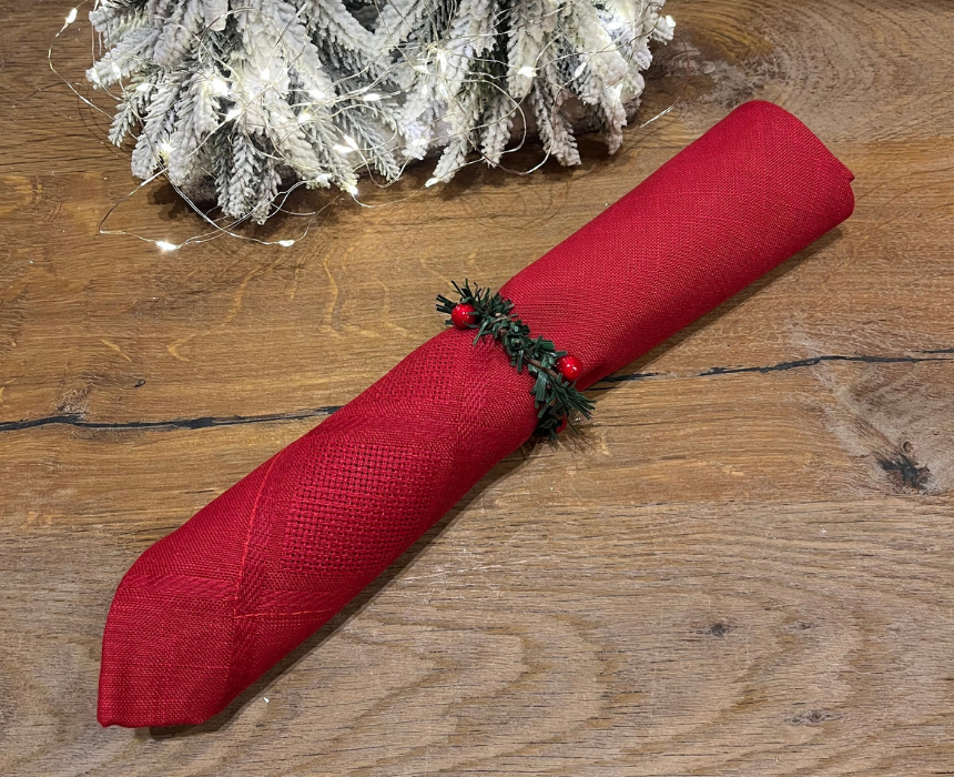 Add a festive touch to holiday dining with these Christmas Napkin Rings, crafted from greenery and accented with vibrant red berries. Perfect for elevating your holiday table, they add a classic and stylish look to any dinner setting. Simply slide them over napkins for an instant decorative upgrade that complements seasonal décor and tableware.