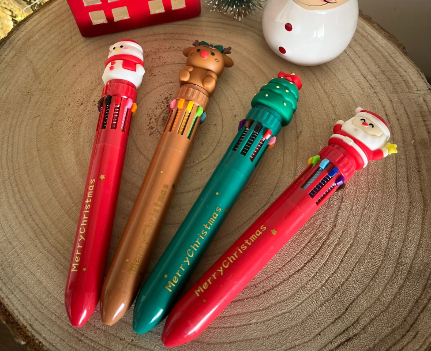 The Christmas Pen in multicolors brings festive fun to everyday writing with ten vibrant colors and four playful 3D designs featuring Santa, reindeer, tree, and snowman. Perfect for gifting, holiday notes, or adding a cheerful touch to school and office stationery, it spreads seasonal joy with every use.