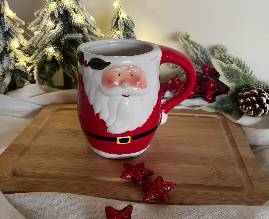 The Christmas Santa Mug, shaped like Santa Claus, is a festive way to enjoy hot cocoa, tea, or coffee during the holiday season. Its playful design adds cheer to your kitchen or holiday table, making it perfect for gifting or daily use. Bring seasonal joy to every sip with this charming mug.
