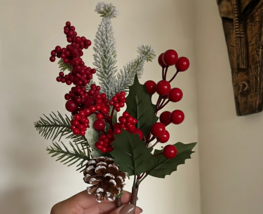 These Christmas small flowers branches bring festive charm to any bouquet or holiday display, featuring a variety of designs and rich seasonal colors. Perfect for decorating wreaths, centerpieces, or garlands, they can be styled alone or mixed with other greenery for a fuller, more vibrant Christmas arrangement.