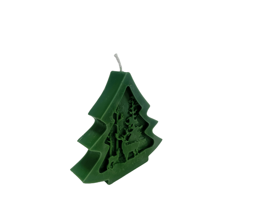 Natural beeswax candle shaped like a 3D Christmas tree. Handmade and available in red, green, and white. Colors can be customized upon customer request. Perfect for festive décor or holiday gifting.