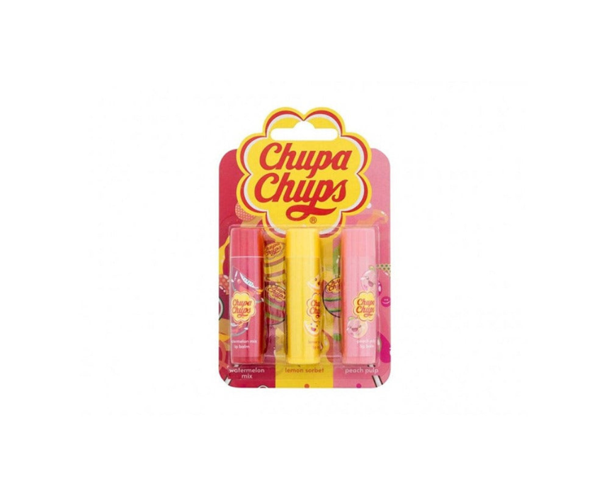 Chupa Chups Lip Balm Set of 3 moisturizes and softens lips while delivering sweet, fruity flavors. Perfect for daily use, it keeps lips hydrated, smooth, and pleasantly scented for a fun and refreshing feel.