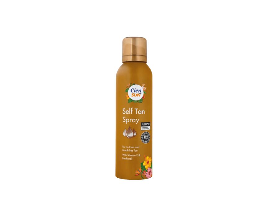Cien Sun Self Tan Spray, made in Germany, delivers an even and streak free tan with the nourishing benefits of vitamin E. Its easy to apply formula ensures a natural looking glow without orange tones or patchiness. Spray evenly on clean, dry skin and wash hands immediately after application for a flawless, sun kissed finish.