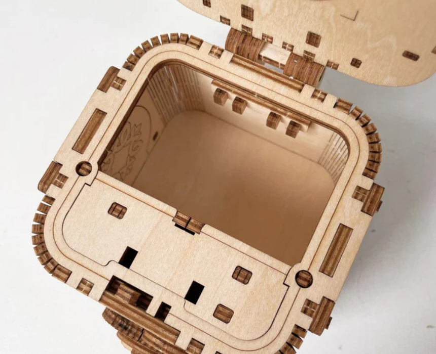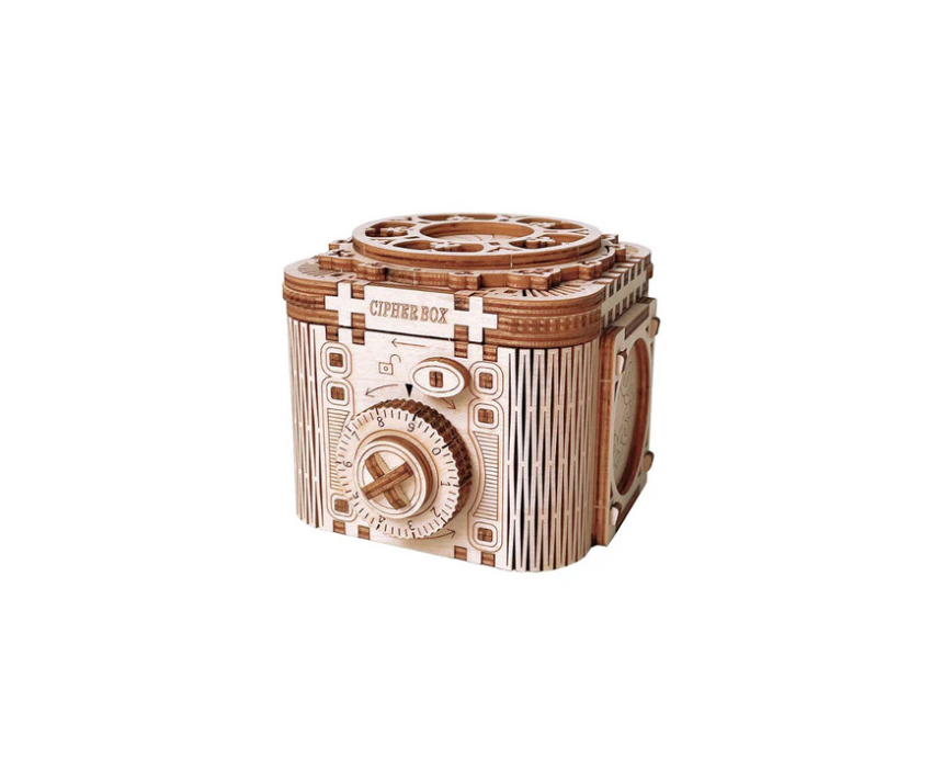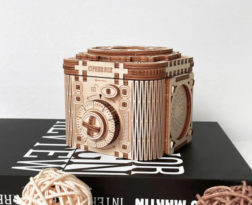 The Cipher Box 3D Mechanical Wooden Puzzle is an intricately engineered wooden model that builds into a functional combination style box with hidden compartments. Crafted from precision cut wood it offers a challenging and satisfying assembly experience while showcasing clever mechanical movement. Ideal for styling on a desk bookshelf or coffee table it serves as both an eye catching decor piece and a unique gift.