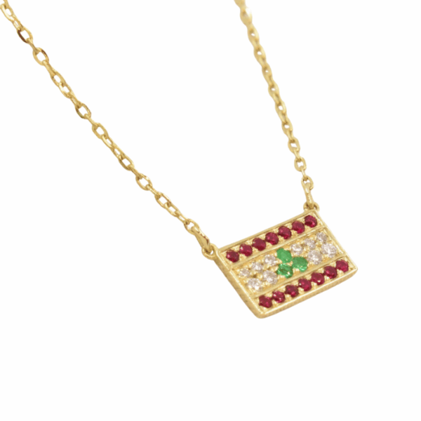 The Circle of Life Necklace is a timeless gold-plated piece featuring a striking dark green stone. Designed to symbolize continuity and balance, this elegant necklace adds a refined touch to both everyday outfits and special-occasion looks.