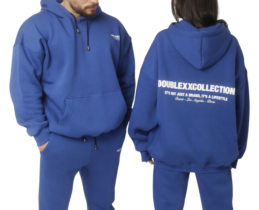This Classic Hoodie in royal blue is a premium oversized hoodie for men and women from DOUBLEXXCOLLECTION, combining timeless style with ultimate comfort. It features a high-density print on the front left chest with “doublexxcollection,” the slogan “It’s not just a brand, it’s a lifestyle,” and “Beirut-Los Angeles-Paris,” while the back showcases the same intricate design for a bold streetwear statement. Crafted from premium 3-fleece fabric, it delivers a soft, luxurious feel perfect for casual or urban-inspired looks.