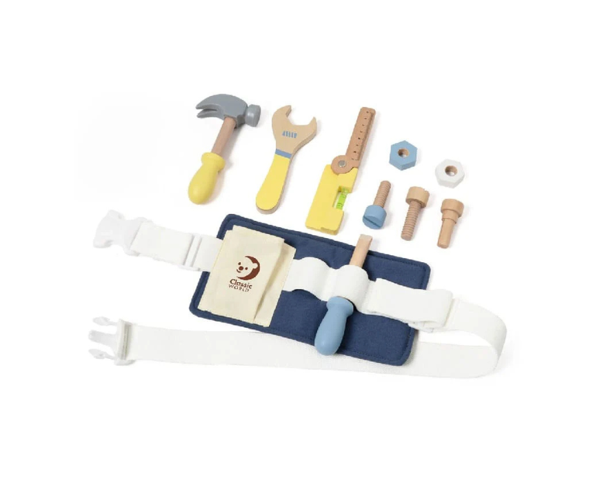 The CLASSIC WORLD Wooden Tool Belt is a hands on play set that encourages imaginative role play and early problem solving skills. Designed to be worn comfortably around the waist, it allows children to carry their toy tools while pretending to build, fix, and create. Ideal for playtime at home or in learning spaces, it supports creativity, coordination, and interactive pretend play.