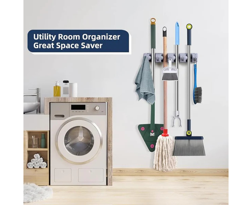 The Mop and Broom Holder keeps your cleaning tools organized, secure, and off the floor. Designed with non-slip rubber grips, multiple slots, and hooks, it holds mops, brooms, and other tools firmly in place. Made from durable, rust-resistant ABS material, it’s perfect for closets, laundry rooms, garages, or bathrooms, maximizing space and keeping everything tidy.